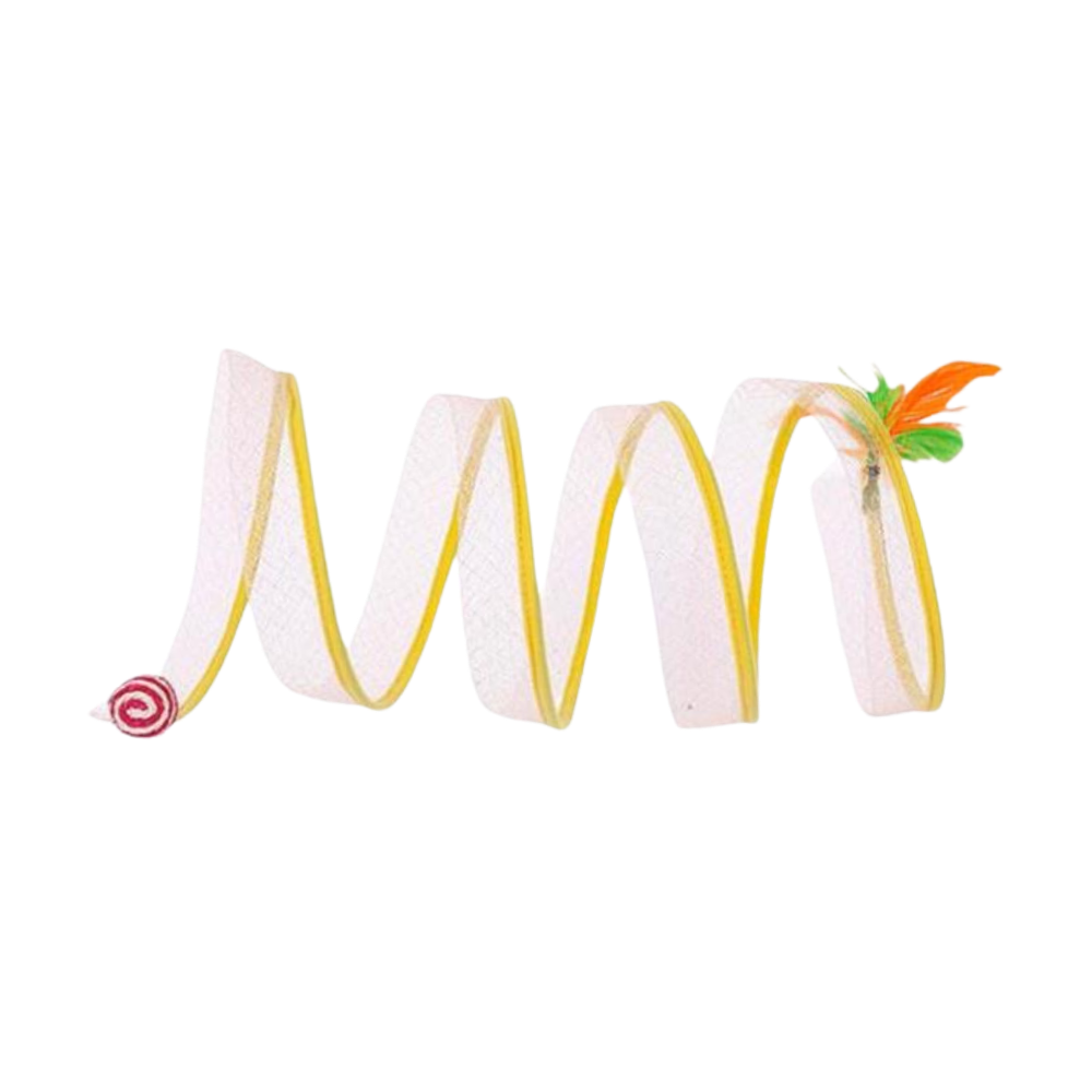 To address the common issue of feline inactivity and its associated problems, the Interactive Compact Cat Tunnel emerges as an innovative solution. Its unique spiral design and playful hanging toys at each end ignite your cat's curiosity and playfulness, offering an interactive experience that counters boredom effectively. This toy is tailored to cater to various feline playstyles, ensuring continuous engagement and providing a stimulating environment that keeps your cat active, entertained, and mentally stimulated, thus fostering a joyful and energetic household pet.