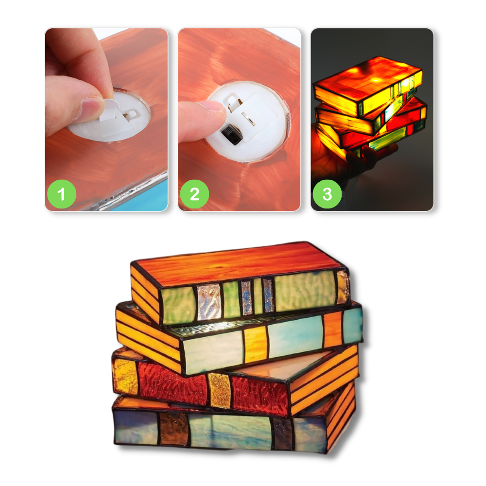 Designed to be more than just a light source, the Timeless Stacked Books Lamp serves as a beacon of tranquility in your home. Its carefully crafted stained glass panels emit a soft, inviting glow, transforming any room into a sanctuary of peace and relaxation. As the warm light permeates through the vibrant hues of the glass, it casts a kaleidoscope of gentle colors, creating a serene atmosphere that's ideal for delving into your favorite novel or simply unwinding after a busy day. This lamp is not just an object, but a companion that enhances your moments of solitude and reflection, making every corner of your room an inviting space for relaxation and contemplation.